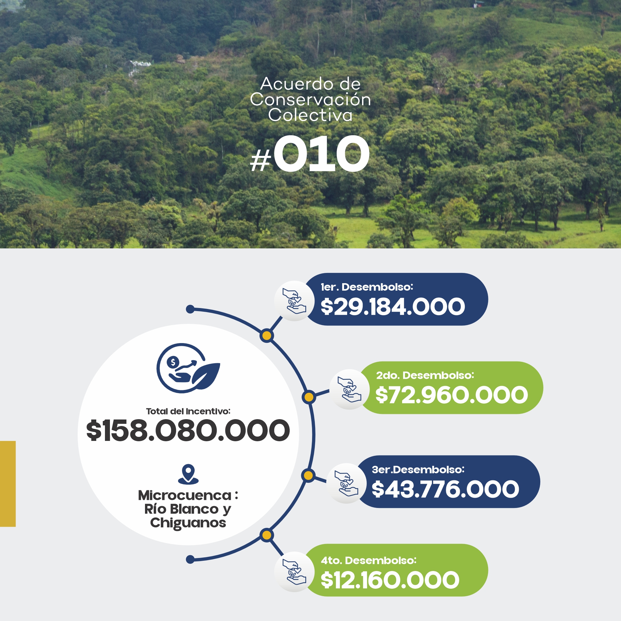 Con una inversión de $158.080.000, el acuerdo se centra en la preservación de 364,8 hectáreas de bosque, ecosistema estratégico que alberga una rica biodiversidad y brinda servicios ambientales esenciales, como la regulación hídrica y la captura de carbono.